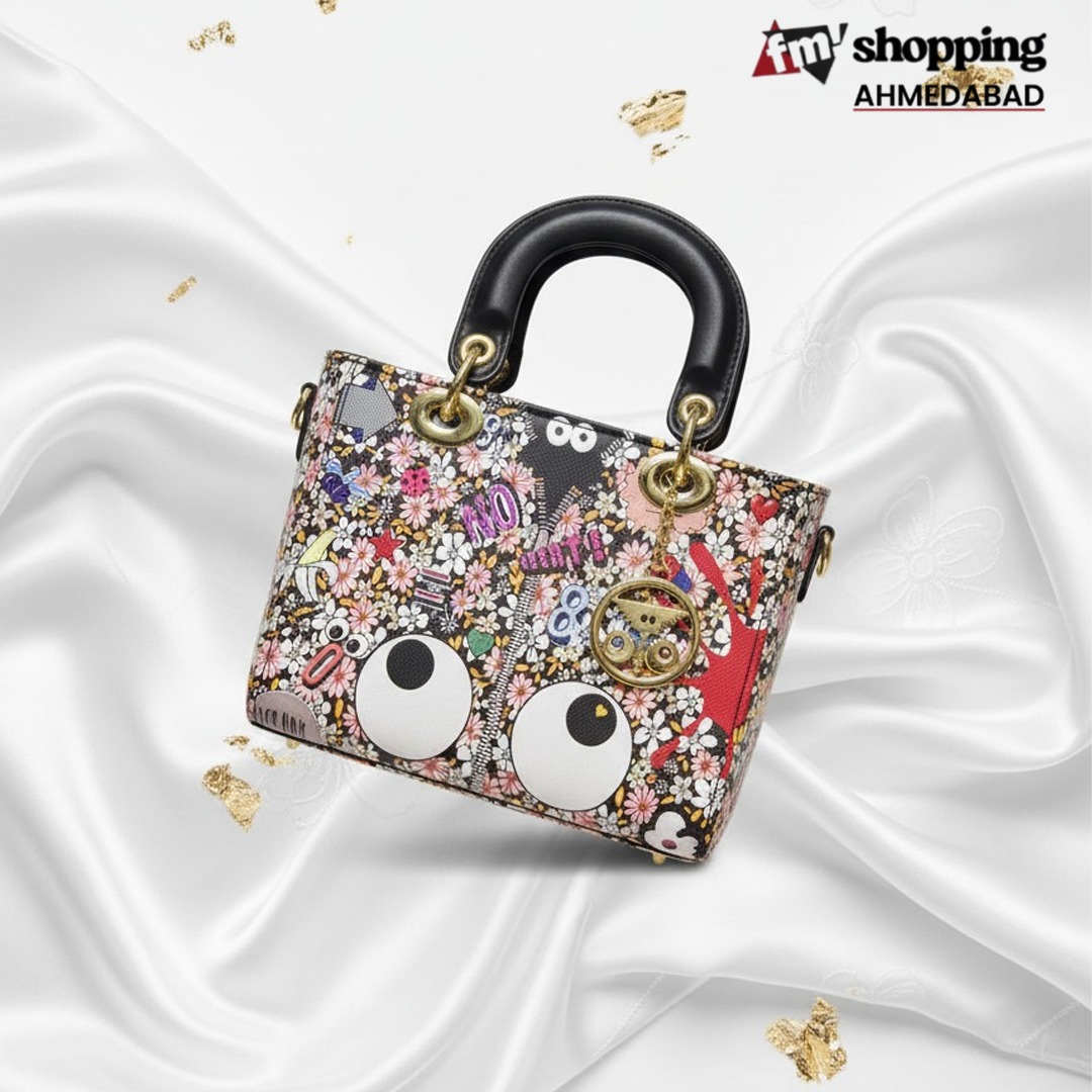 A stylish and quirky handbag crafted for fashion lovers who enjoy unique designs. The vibrant cartoon artwork, compact structure, and decorative gold charm make it both trendy and functional. Lightweight yet spacious enough for daily essentials, this bag adds a fun and youthful vibe to any outfit.