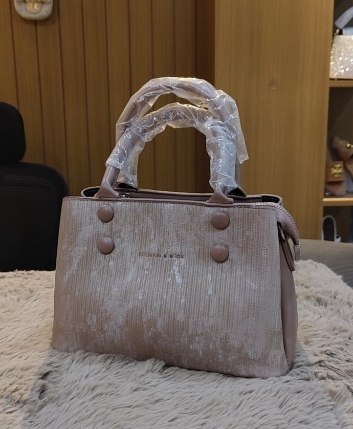 This rose pink handbag features a soft velvet-textured front with elegant button detailing, giving it a classy and modern look. Designed with sturdy double handles and a spacious interior, it’s perfect for everyday use, office wear, or casual outings. The side panels add structure, making the bag stylish yet practical